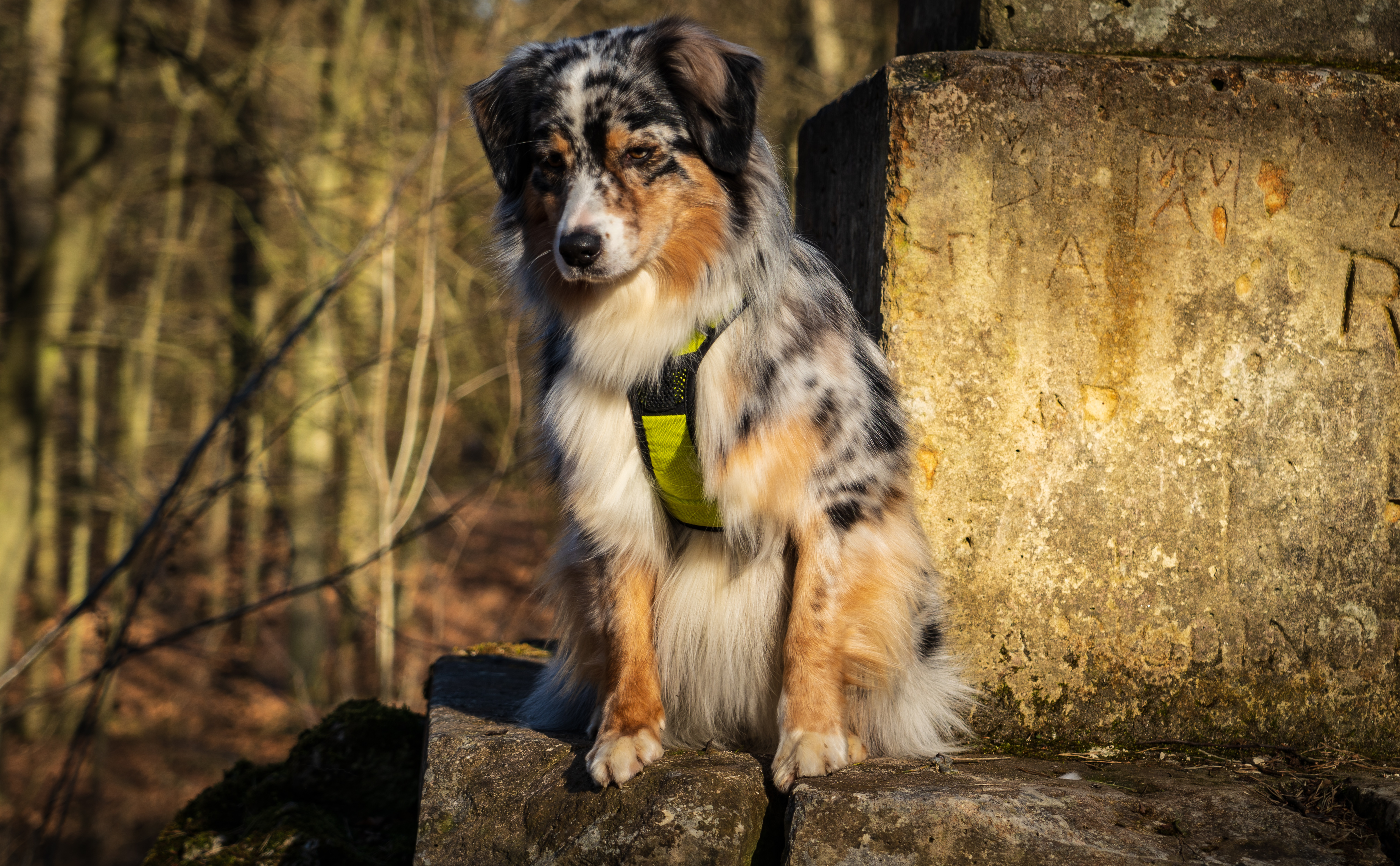 - Profitez de la balade pour faire des petits exercices afin de dépenser votre chien mentalement. Ne demandez pas à votre chien d’effectuer des exercices durant toute la balade mais n’hésitez pas à prévoir un petit moment pour travailler la marche en laisse, le assis, le couché, le pas bouger, le rappel, …